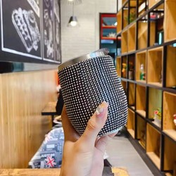 Tinh thể Rhinestone được sử dụng cho sang trọng phích cup mini nhỏ gọn cầm tay 304 nước bằng thép không gỉ cup cao màu Ins Pocket cup